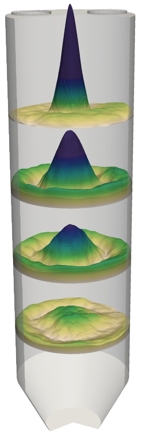 Im Rahmen dieses Projektes wird mit Hilfe von CFD-Modellierungen die Staubverteilung von Zweiphasen-Strömungen innerhalb von Behältern (Silos) in Abhängigkeit der Strömungsverhältnisse simuliert. Dies ermöglicht die Ermittlung der Staubkonzentrationsverteilung unter realen Betriebsbedingungen.